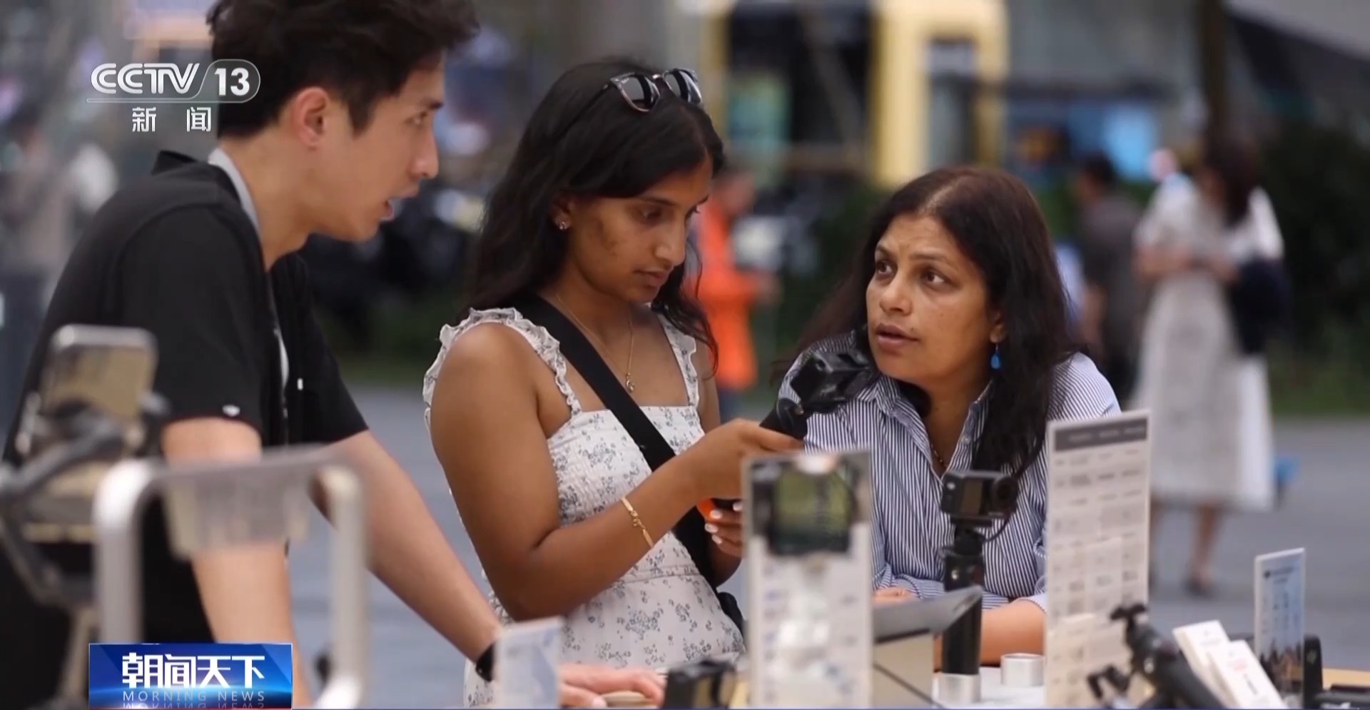 作为境外旅客“中国购”的“心头好”,国产手机、智能手表、无人机等产品的销量持续增长。深圳的华强北最近新增了一批离境退税商店,智感满满的科技产品备受外国人青睐。