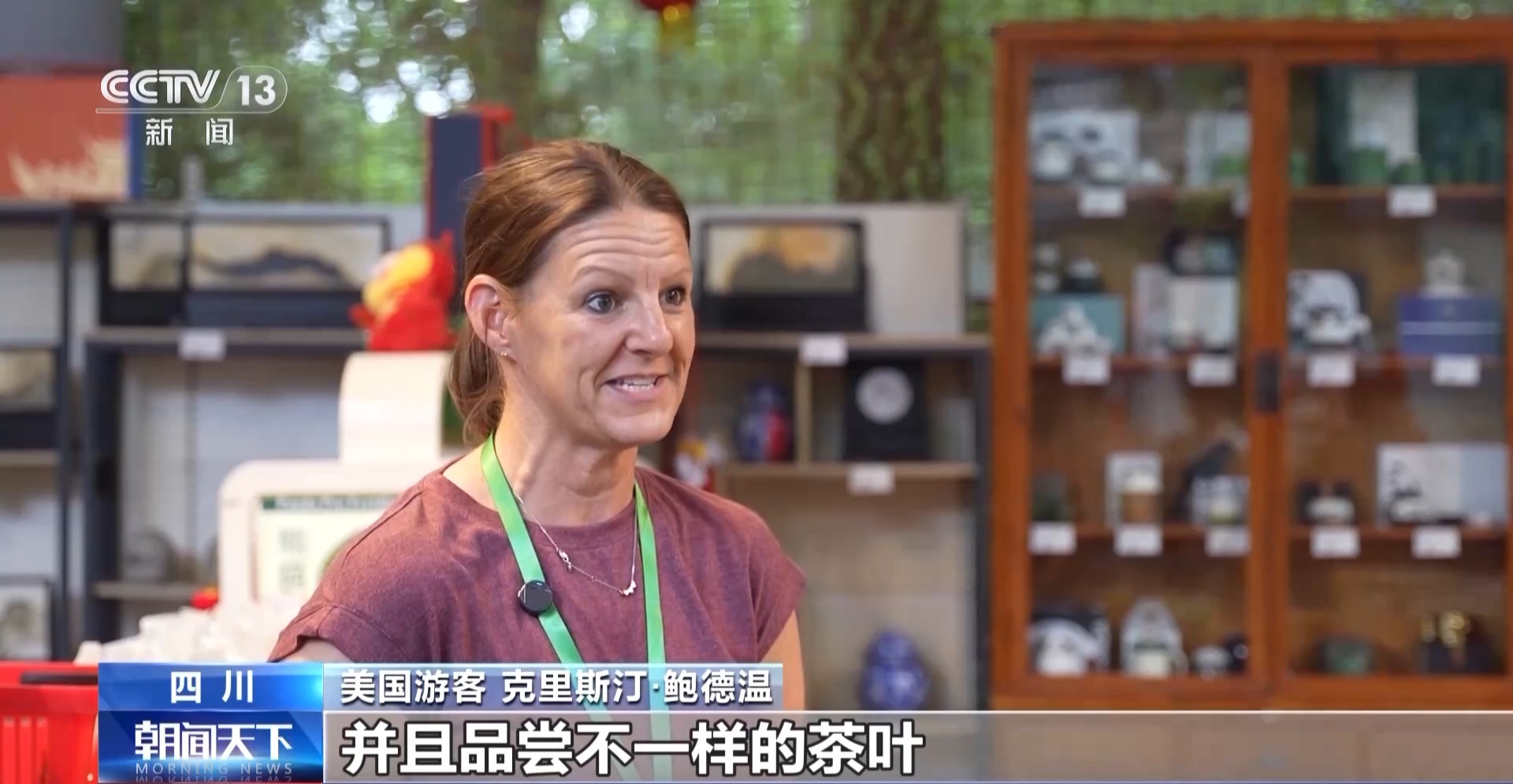 美国游客 克里斯汀·鲍德温:我现在非常喜欢去茶楼喝茶,并且品尝不一样的茶叶。